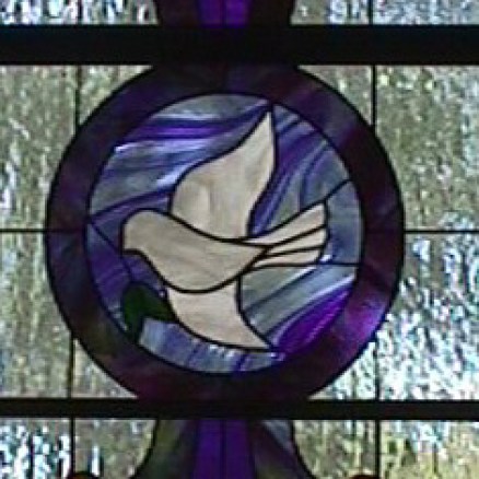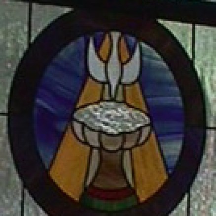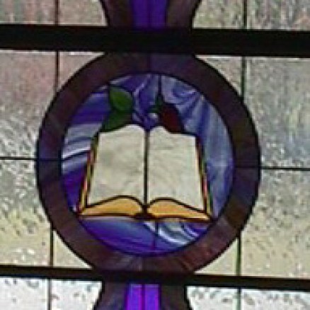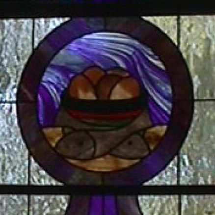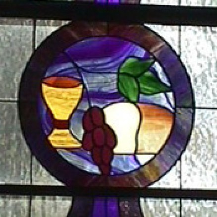 Morgan Windows. The three Tiffany-style lancet windows behind the altar are from the old building on Church Street. Painstakingly restored by local stained glass artist Steve Weir, they commemorate the sacrifice of the Eucharist. The window on the left shows the wheat from which the Eucharistic bread is made, and the window on the right shows the grapes which are the source of the Eucharistic wine. The center panel shows the cross and crown of Jesus and the cup of salvation. The quotations are from Hymn #301, ‘Bread of the World in Mercy Broken.’